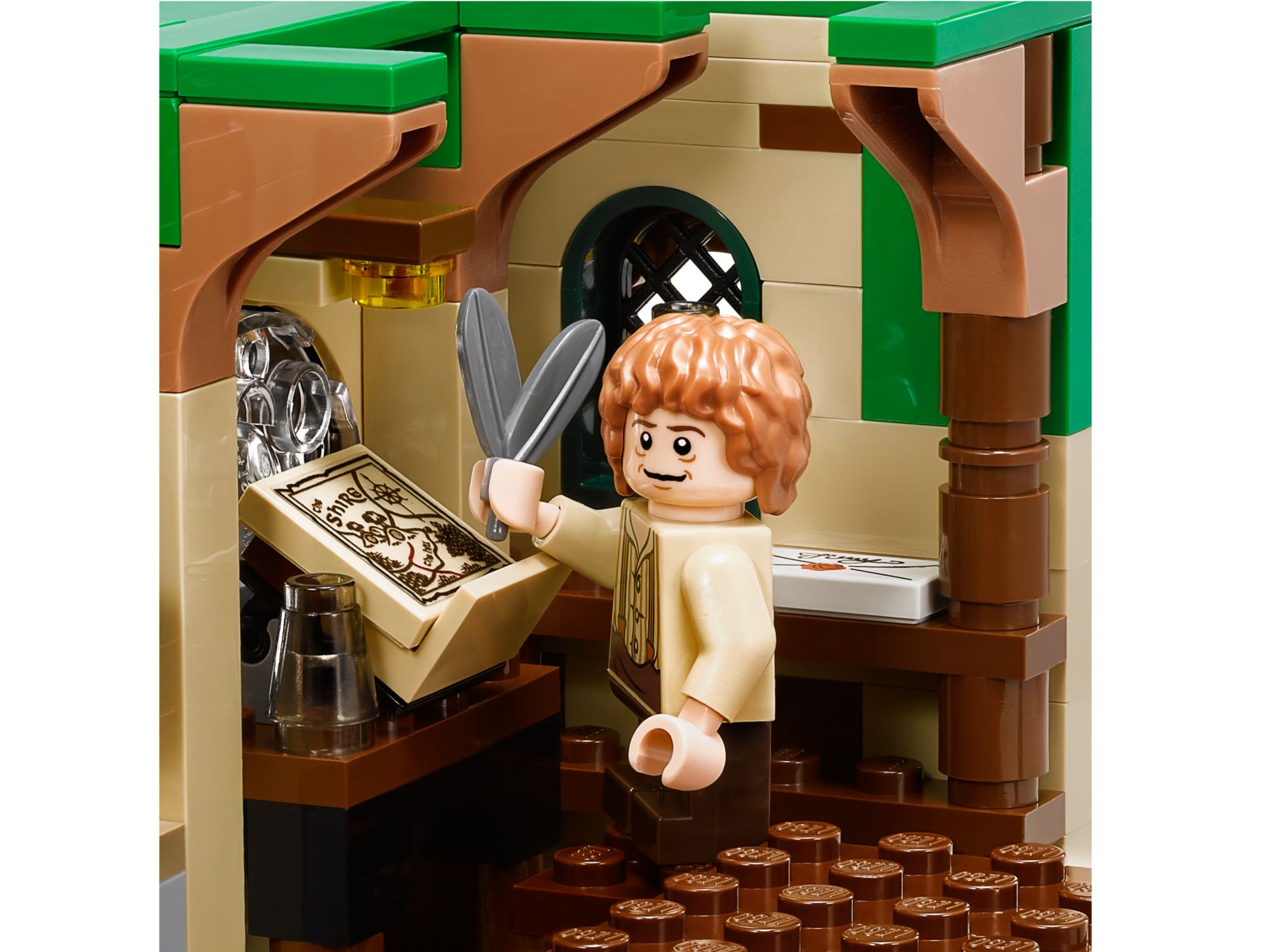 The main build of this LEGO set is the house. A charming little Hobbit home in the woods belonging to Bilbo Baggins. It even has a little tree with plants growing on the roof.