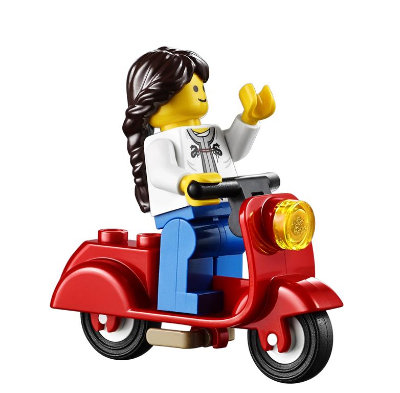 There are a lot of interesting details and one of my favorite accessories is the cute red scooter.