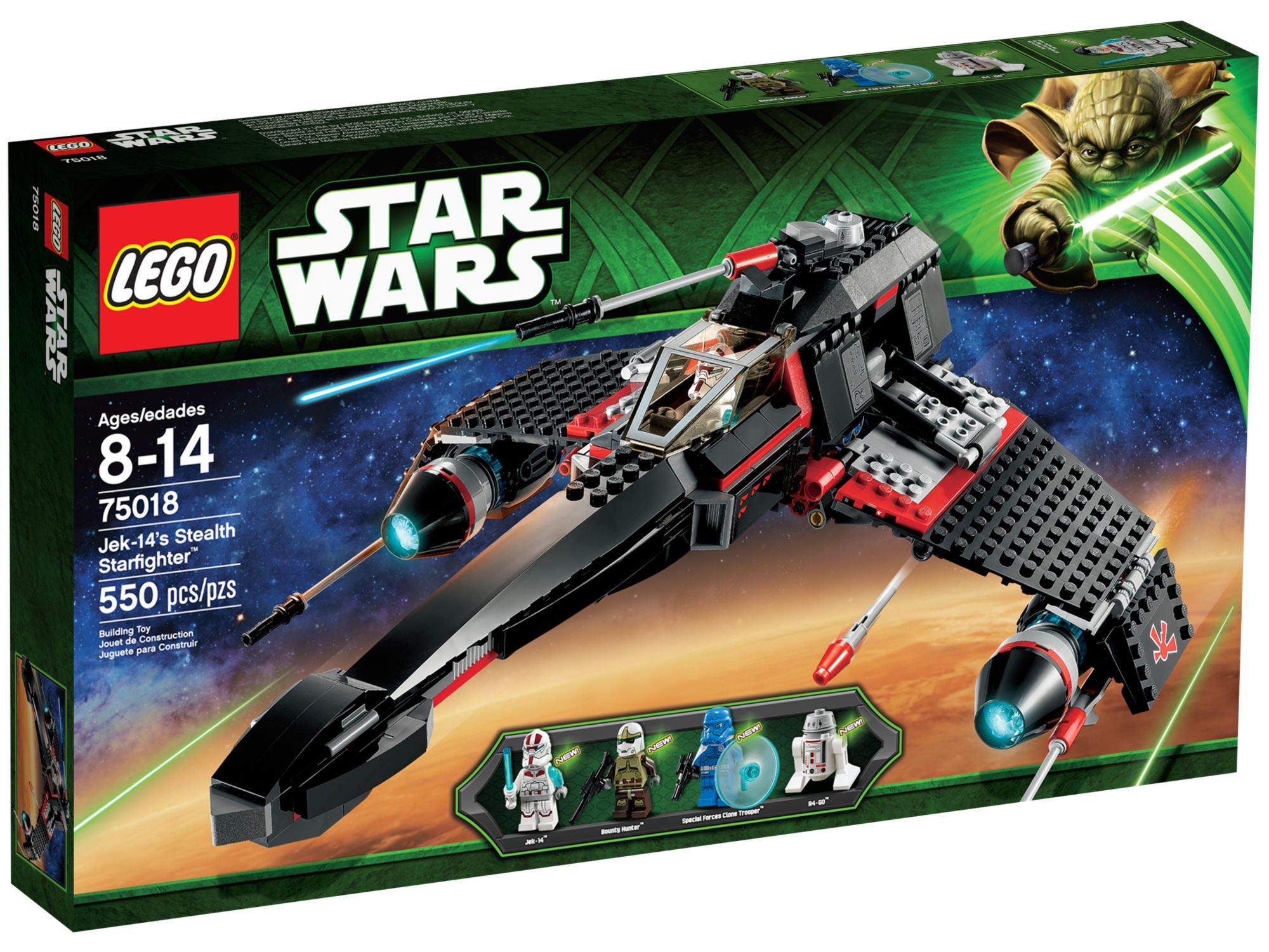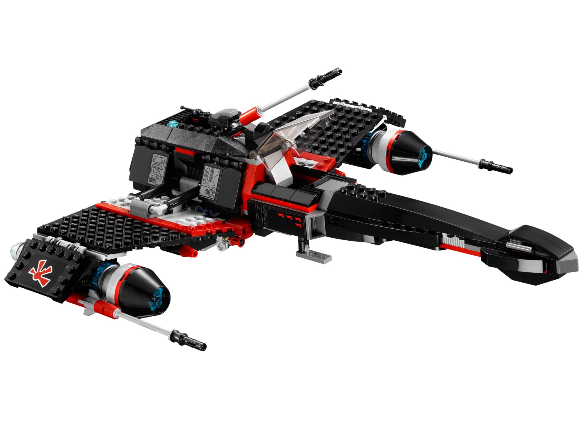 The JEK-14 Stealth Starfighter 75018 is a mean looking spaceship in black with red accents.