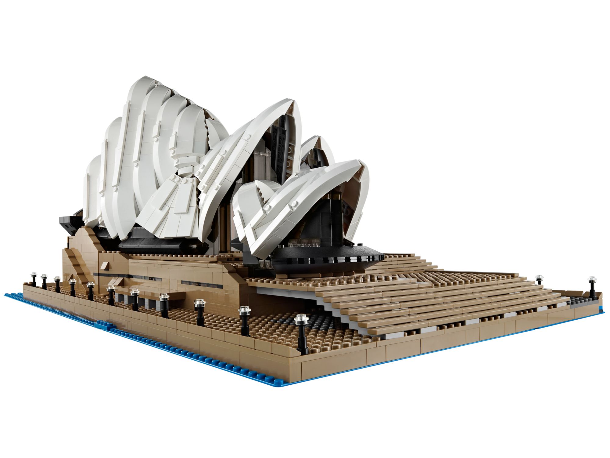 Blue colour base plates in a larger 48 x 48 stud size has also been produced just for this set to recreate the Sydney Opera House by the waters of the river.