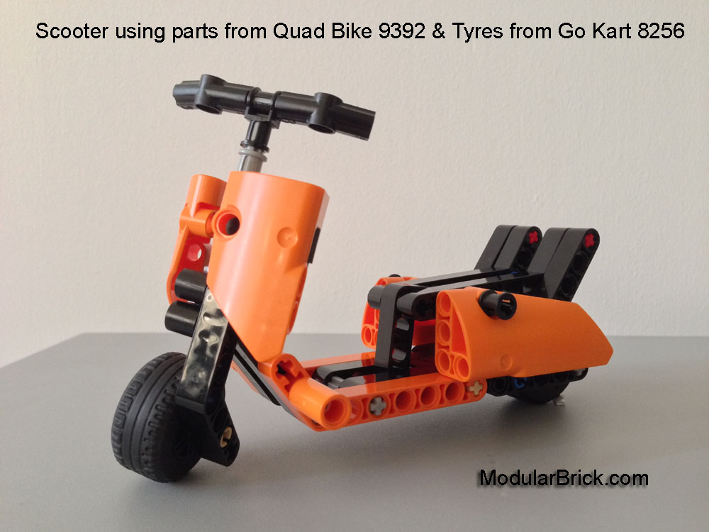 After building the LEGO Technic Quad Bike 9392, I looked at the model and thought that the orange colored panels could be used to make a Vespa Scooter.